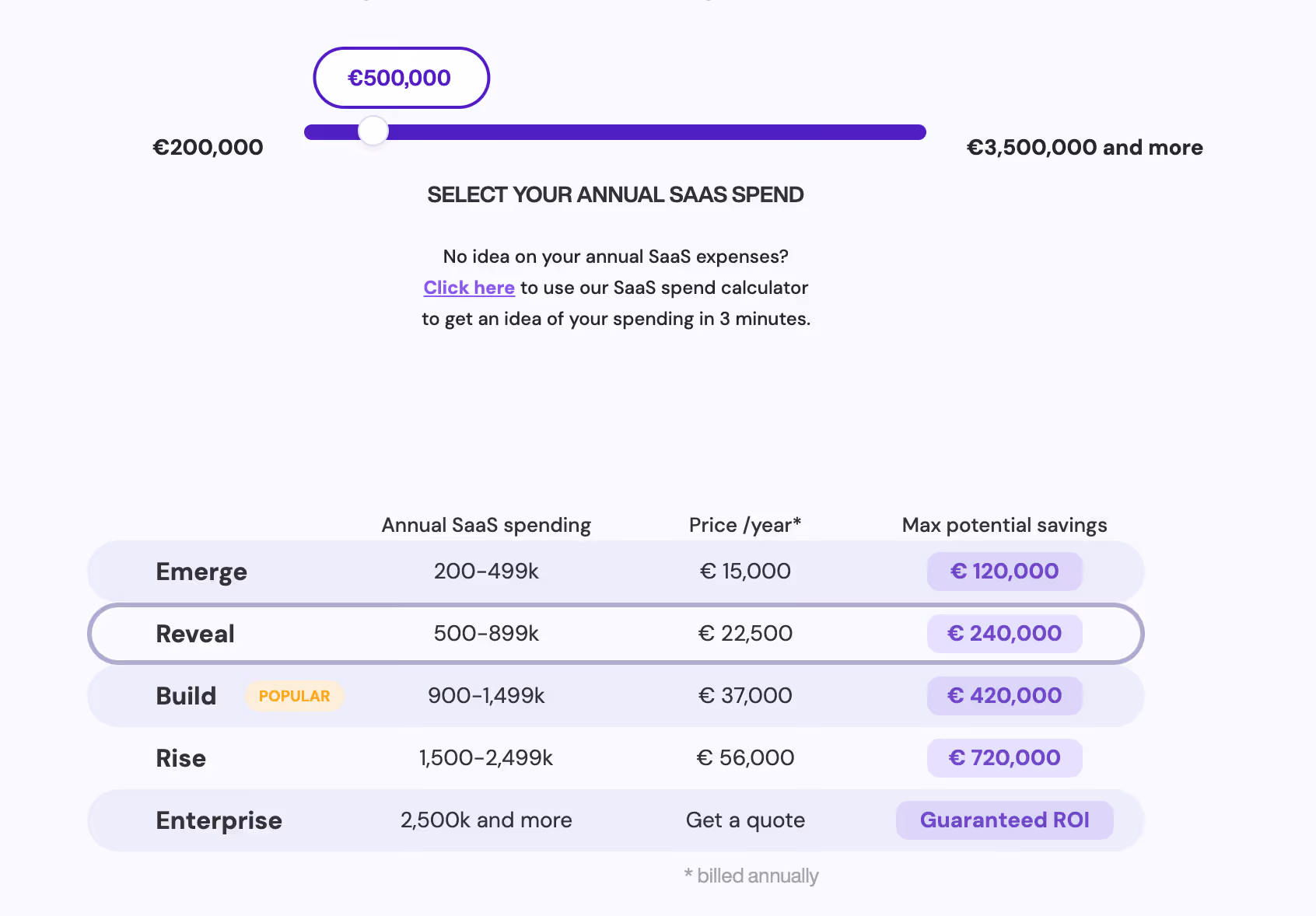 Welii offers an annual pricing model based on the annual SaaS spend of the company. The higher the SaaS spend, the higher the potential savings and with it the price for the solution. Weli promises a Return on Investment that is always positive compared to the cost of their own solution.